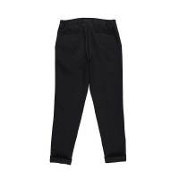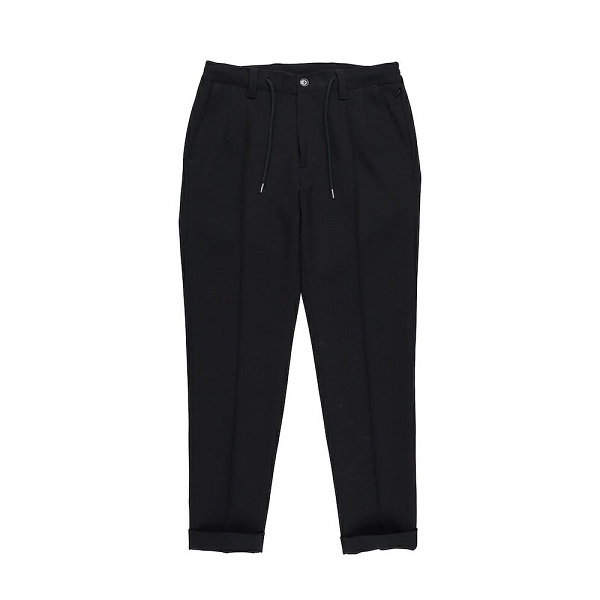 クラシックなトラウザーズから生み出したセンタークリーススラックスの登場です。「トラウザーズ」は同じボトムスでもスーツに合わせられる礼装用という意味合いが強いフォーマルな名称であり、この語源に基づきフォーマルをカジュアルダウンさせた企画としてデザインしています。テーパードの美しいシルエットとピンタックを入れたフロントのセンタークリースが特徴的で、裾始末はクラシックなダブル仕立て。ウエストシャーリングリブとドローコードにてリラックスして着用しても良し、ドローコードを内側に落とすことでベルト着用も可能な2WAY仕様です。前開きはZIPPERフライ、釦は1PIU1UGUALE3ロゴ入り本水牛釦を採用しています。