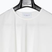 ビッグシルエットの着物スリーブ T シャツ。前身 - 袖 - 後身は全て 1 枚の布で成形されることによりできる、肩 - 脇のゆとりは快適な可動域を確保している。
