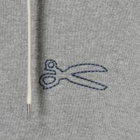 胸元のチェーンステッチで描かれたシザーズマークがアクセントになるフーディー。フロントは上下に開閉できるダブルZIP仕様になっており、開閉によって印象の変化を楽しめます。肌触りのやさしい裏毛仕様が着心地の良さを演出。シンプルなボトムやデニムと合わせたコーディネートがおすすめです。
