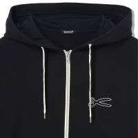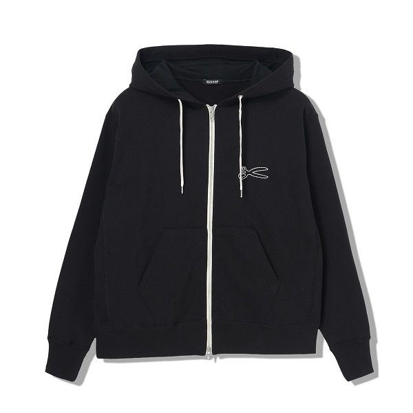 胸元のチェーンステッチで描かれたシザーズマークがアクセントになるフーディー。フロントは上下に開閉できるダブルZIP仕様になっており、開閉によって印象の変化を楽しめます。肌触りのやさしい裏毛仕様が着心地の良さを演出。シンプルなボトムやデニムと合わせたコーディネートがおすすめです。