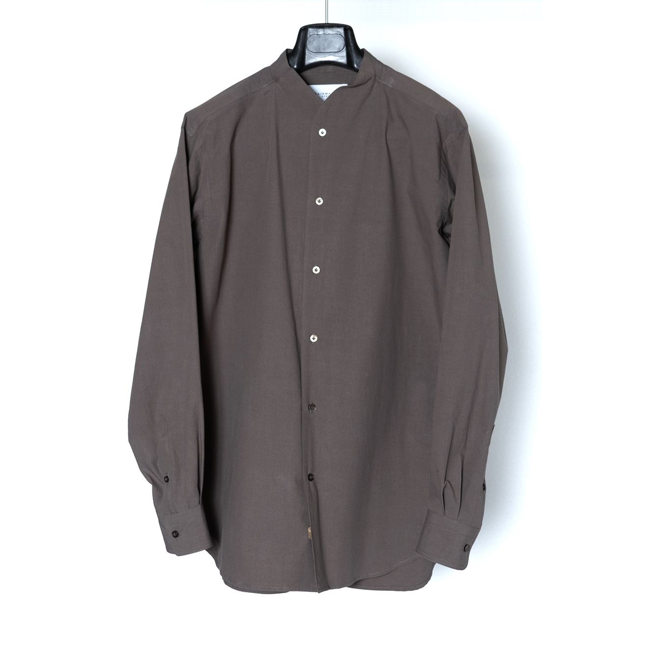 法僧の着用する僧綱襟 ( そうごうえり ) から着想を得た衿型は、とりわけノーカラージャケットシリーズとよく調和し、お互いの個性を引き立てあう相乗効果が期待出来ます。