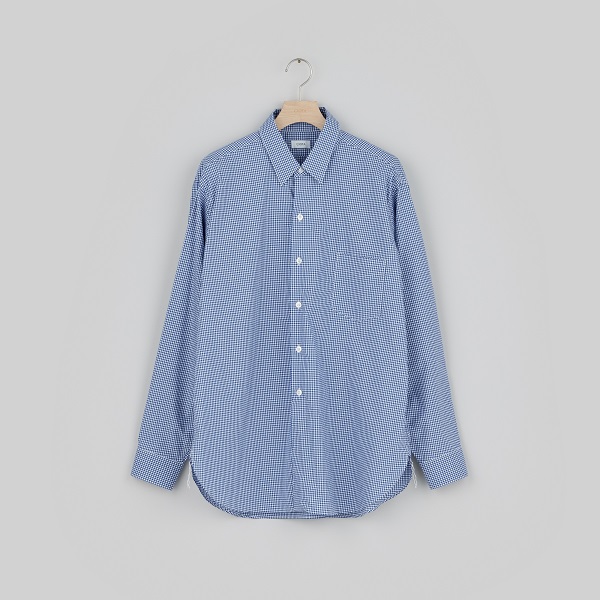 超長繊維・スビンコットンの80番手単糸という細い糸を、限界まで高密度で織ったタイプライター生地のレギュラーカラーシャツ。エレガントなハリとコシ、スビンコットンならではの滑らかな質感が特徴です。デザインのモチーフは、ドレスとワークのディテールが入り混じる1960年代のアメリカの古着。細い糸、細かい運針によるドレスシャツのような繊細な縫製と、岡山特有の巻き縫いミシンによるワークウェアのようなカジュアルさが同居。気負わずに羽織れて、ラフな着こなしでも品がいい、絶妙なバランスです。2024春夏モデルは、首周りにゆとりをもたせるなど、これまで展開していたものよりも大きめのサイジング。また、ユニセックス展開となり、いっそう豊富なバリエーションから、気分に合わせてサイズを選べます。