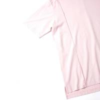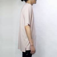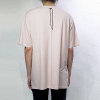 表振りロックのラインをフロントに 2本、センターバックに 1本走らせたオーバーサイズ T シャツです。着丈は前後で段差を付けてスリット入り。レイヤード使いにもお薦めです。生地の落ち感によりストンとしたアウトルックで、1枚でもインナーでも使い回しの効くアイテムです。