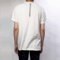 30/- のコットン糸を使い、ソフトで膨らみのある肌触りに編み上げた天竺を使用。型崩れしにくく扱いやすい、デイリーに着用するのに相応しい安定性と機能性を併せ持った素材です。