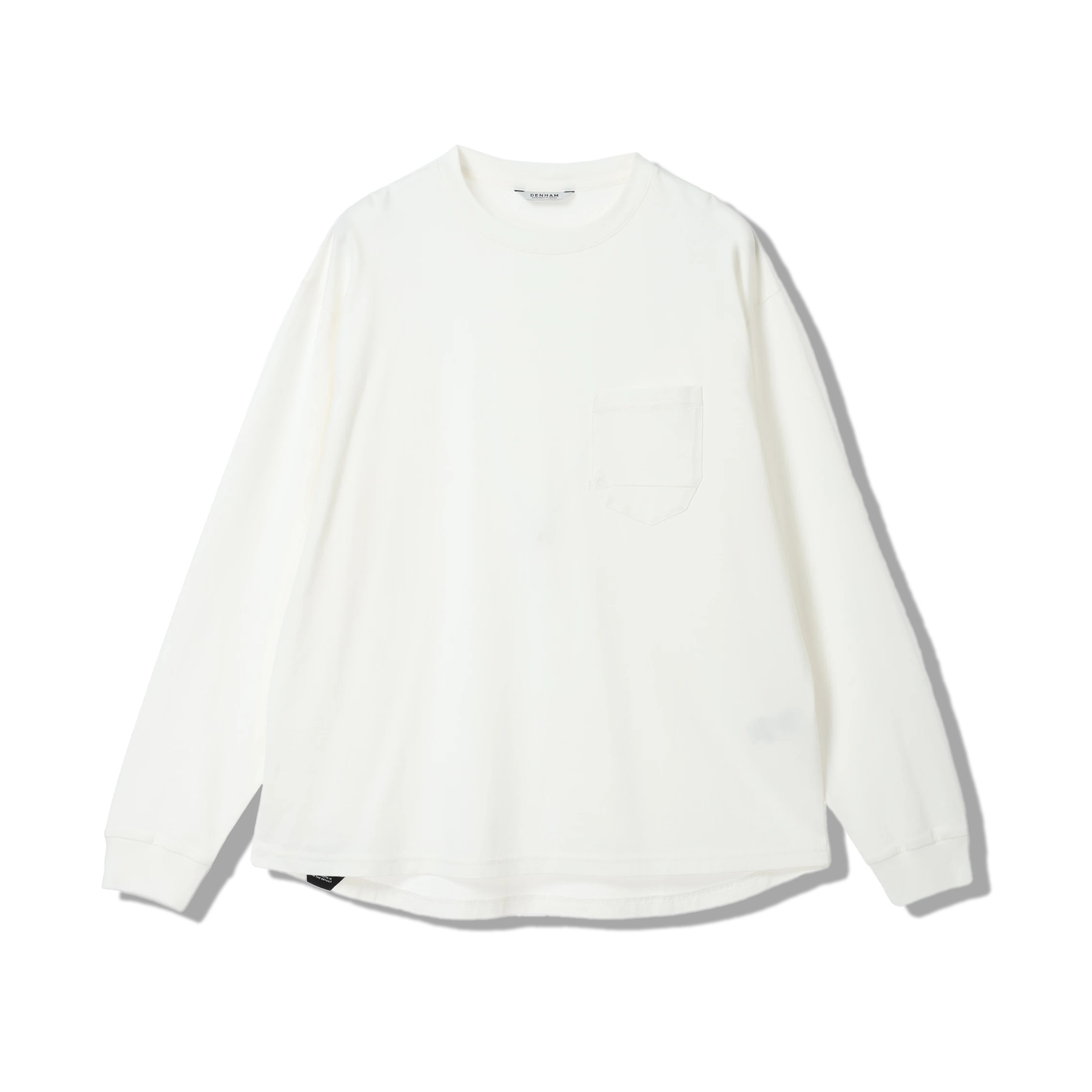 さりげないワンポイントになる胸ポケット付きのロングスリーブTシャツ。ベーシックなクルーネックで仕立てられているので、首元にやさしいフィット感を演出します。バックの裾に施されたシザーズマークもポイント。どんな着こなしにも合わせやすいホワイトの色合いが魅力的なアイテムです。