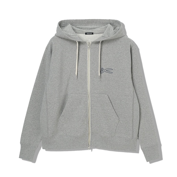 胸元のチェーンステッチで描かれたシザーズマークがアクセントになるフーディー。フロントは上下に開閉できるダブルZIP仕様になっており、開閉によって印象の変化を楽しめます。肌触りのやさしい裏毛仕様が着心地の良さを演出。シンプルなボトムやデニムと合わせたコーディネートがおすすめです。