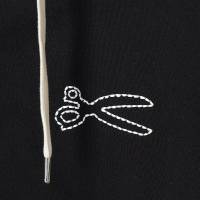 胸元のチェーンステッチで描かれたシザーズマークがアクセントになるフーディー。フロントは上下に開閉できるダブルZIP仕様になっており、開閉によって印象の変化を楽しめます。肌触りのやさしい裏毛仕様が着心地の良さを演出。シンプルなボトムやデニムと合わせたコーディネートがおすすめです。