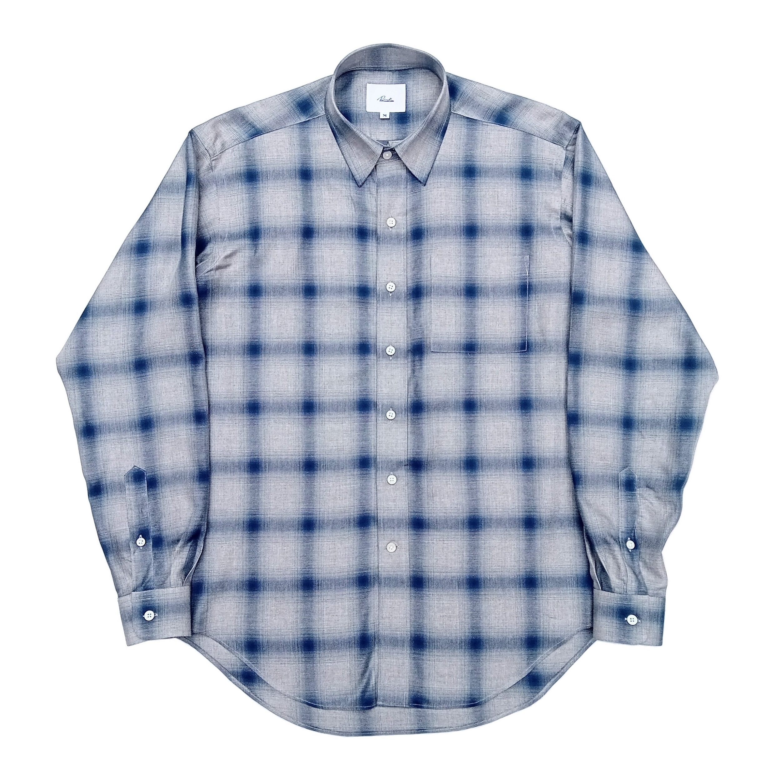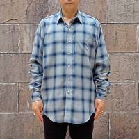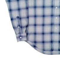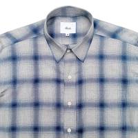 レギュラーフィットサイズのオンブレチェックシャツです。素材は柔らかく滑らかなレーヨンを使用しています。